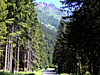Richtig dicht bewaldet ist es in der unteren Hälfte der Nordrampe eigentlich nie, die Straße ist lediglich von vielen Bäumen flankiert, die Sicht ins Tal ist jedoch kaum einmal behindert.