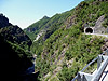 Richtig interessant wird es erst wieder auf den letzten 10 Kilometern der Abfahrt. Die Straße ist durch ein Schluchtsystem gebaut worden, gleich mehrere Tunnel führen durch die Berge.