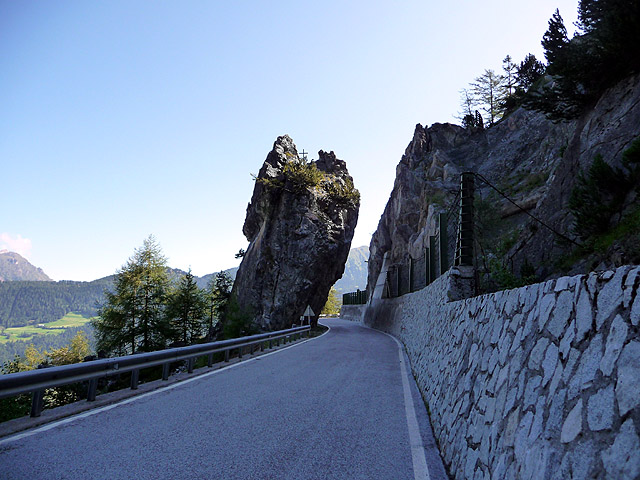 Mitten auf der Nordrampe liegt dieser nette Felsdurchbruch, der ein wenig so aussieht, als könne er jeden Moment auf die Straße kippen.