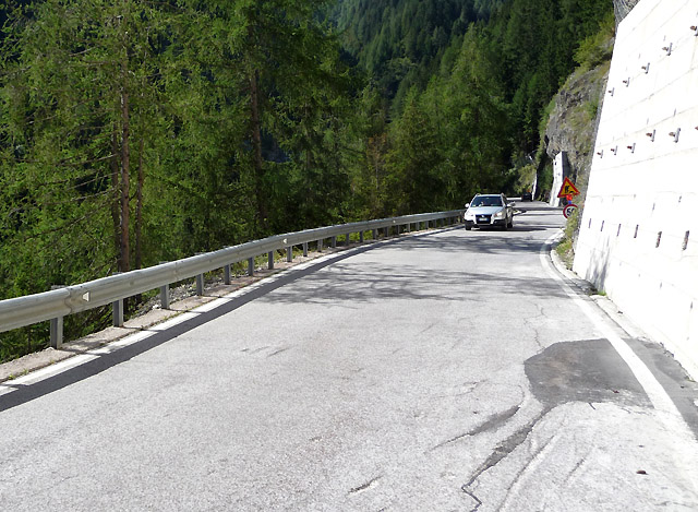 Auf der Nordrampe gibt es einige Stellen mit schlechtem Belag und auch größeren Straßenschäden, hier im Bild ist nur ein kleine und nicht allzu stark beschädigte Stelle zu sehen.