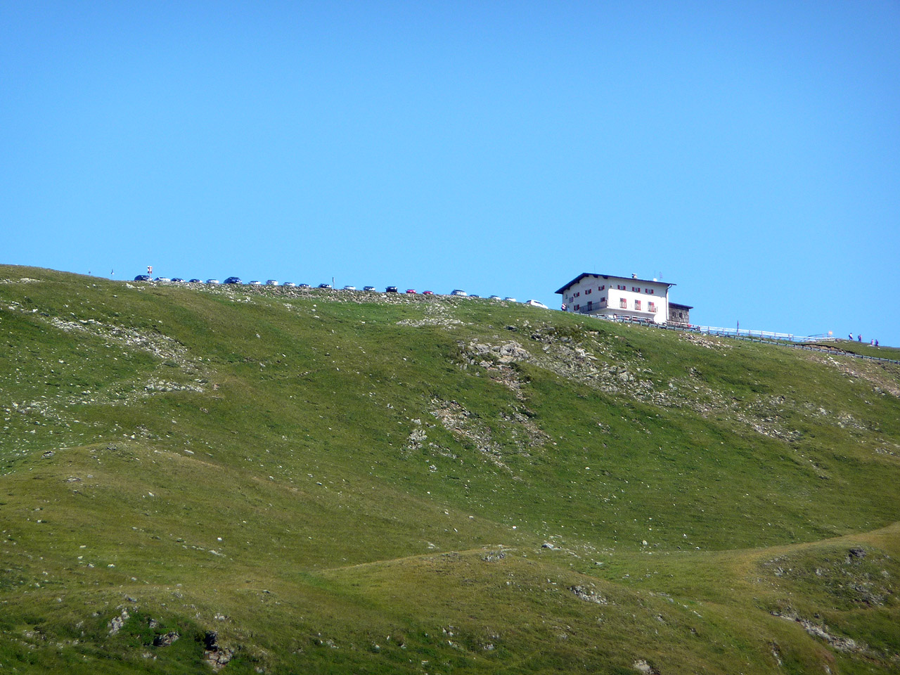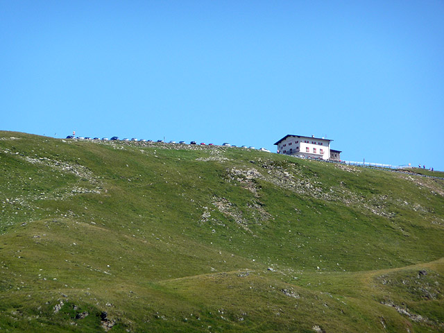 Auf den oberen Kilometern der Penser-Südrampe hat man die Passhöhe desöfteren im Blick,