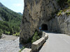 Dahinter führt die Straße vor allem an einem breiten Flußbett entlang, das wie die meisten seiner Art im Sommer viel zu überdimensioniert aussieht. Aber es ist ein netter Anblick und die Straße schlängelt sich schön am Ufer entlang, Felswand auf der rechten Seite und ein hundert Meter langer Tunnel liegt auf dem Weg.