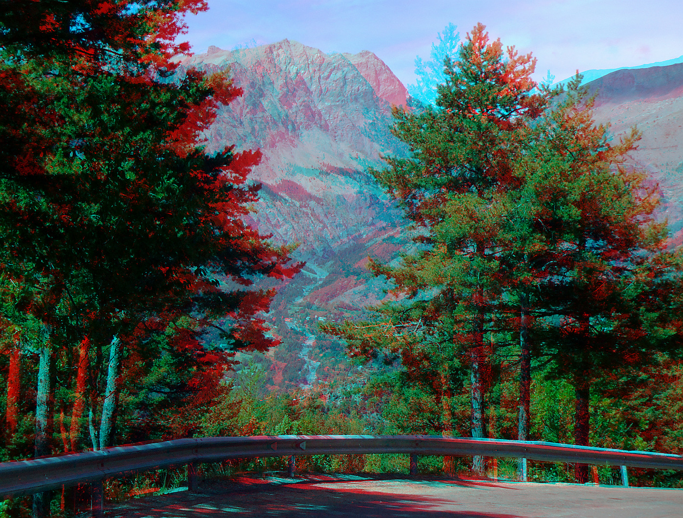 Im oberen Teil hat man mehrmals gute Sicht auf die weit entfernten Berghänge in der Umgebung. Bei Fahrt bergab drängeln sie sich hin und wieder durch die Baumreihen am Straßenrand und machen auf sich aufmerksam.