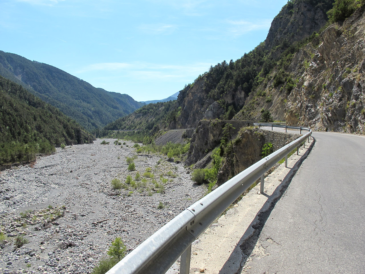 Zwischen Péone und der Einfahrt im Talort Guillaumes fährt man fast die ganze Zeit an diesem Flußbett entlang. Immer schön eingepfercht von Mäuerchen auf der linken und Felswand auf der rechten Seite.