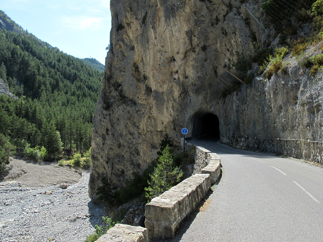 Zwischen Péone und der Einfahrt im Talort Guillaumes fährt man fast die ganze Zeit an diesem Flußbett entlang. Immer schön eingepfercht von Mäuerchen auf der linken und Felswand auf der rechten Seite.