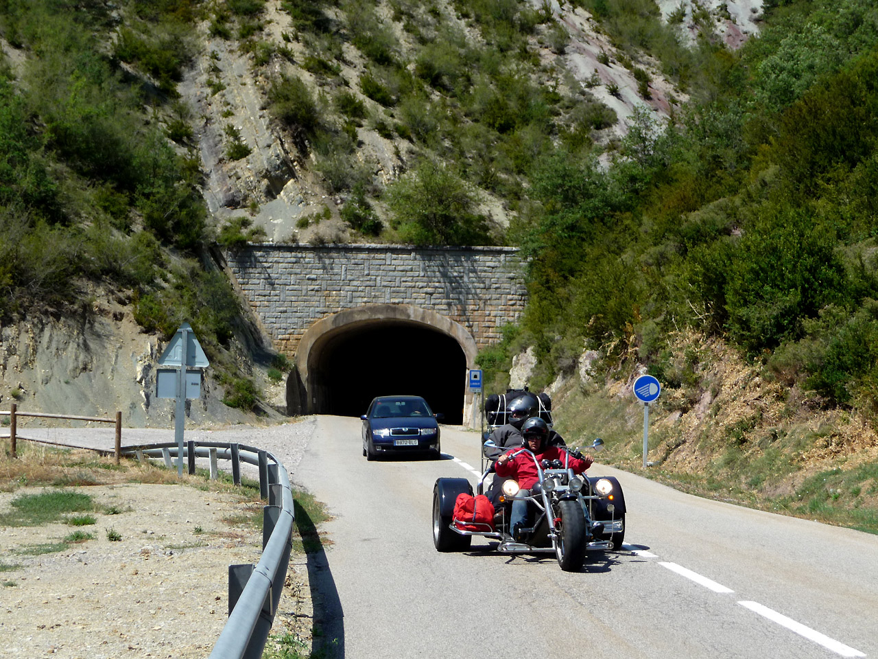 Am Ende der Puerto de Perves-Westrampe, auf Höhe des Stausees Embalse de Escales (liegt links vom Betrachter) fährt man noch durch einen kurzen Tunnel, dann ist die Passstraße auch schon an ihrem Ende angekommen.