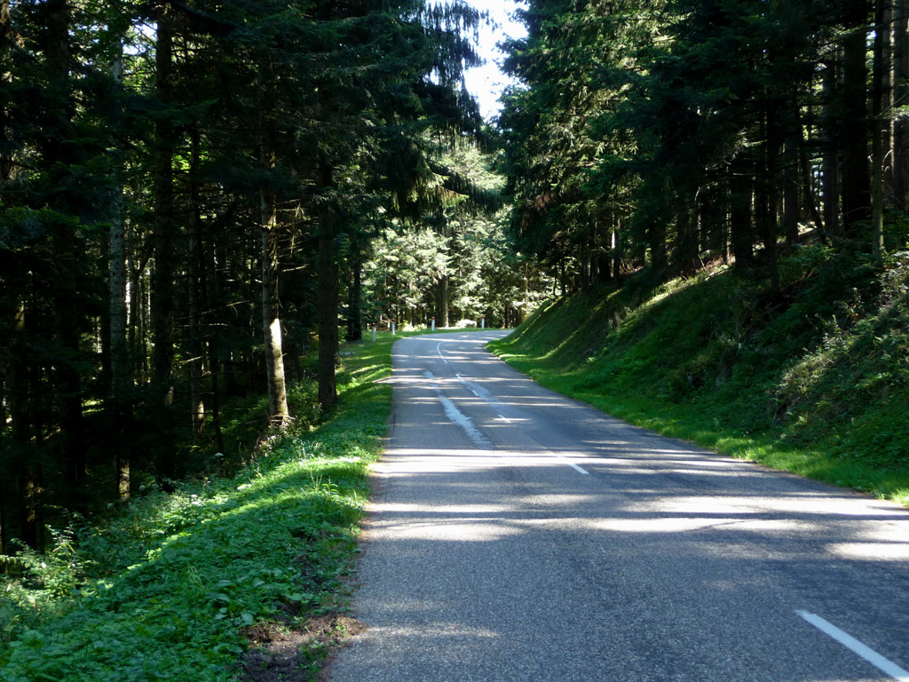Die Straße führt im oberen Teil der Nordrampe zwar durch schönen und dichten Wald,