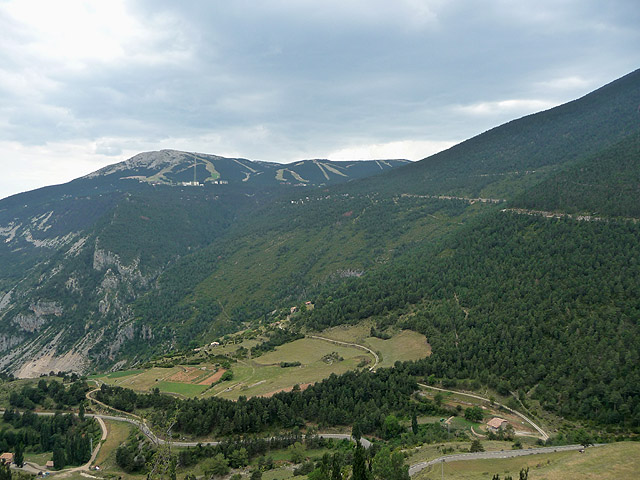 Im mittleren Bereich der Südrampe gibt es eine Stelle, von der aus man einen schönen Blick auf den höhergelegenen Skiort Port del Compte werfen kann. Ist man auf dem Weg Richtung Tal, kommt man nach ein paar Kilometern an die ausgeschilderte Auffahrt, die rechts außerhalb des Bildes liegt.