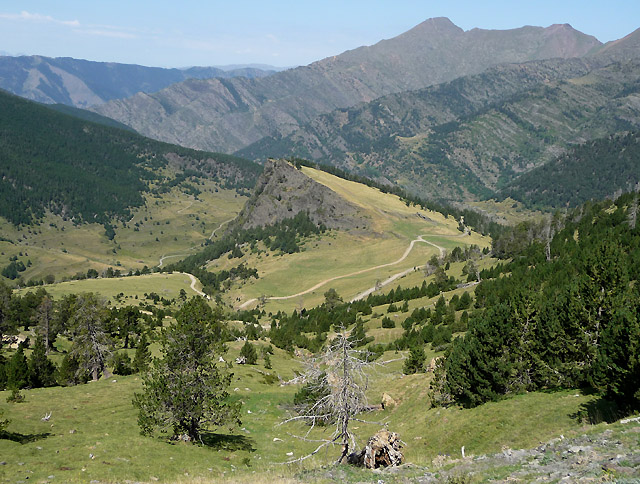 Blick auf die Abzweigung, an der sich die Westrampe für etwas mehr als 2 Kilometer aufspaltet.