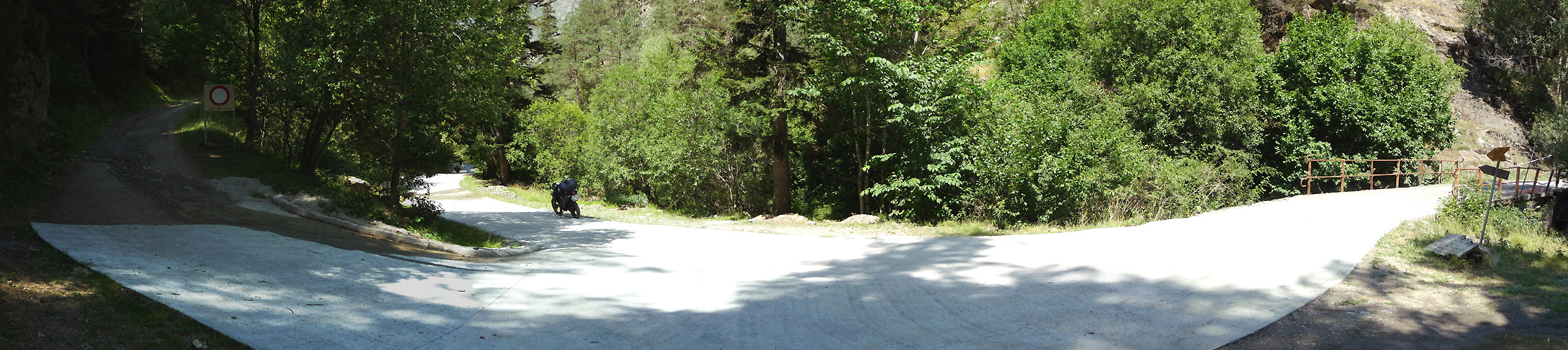 Meine XT steht auf dem Weg der auf schlechtem Asphalt weiter ins Tal zu führt.