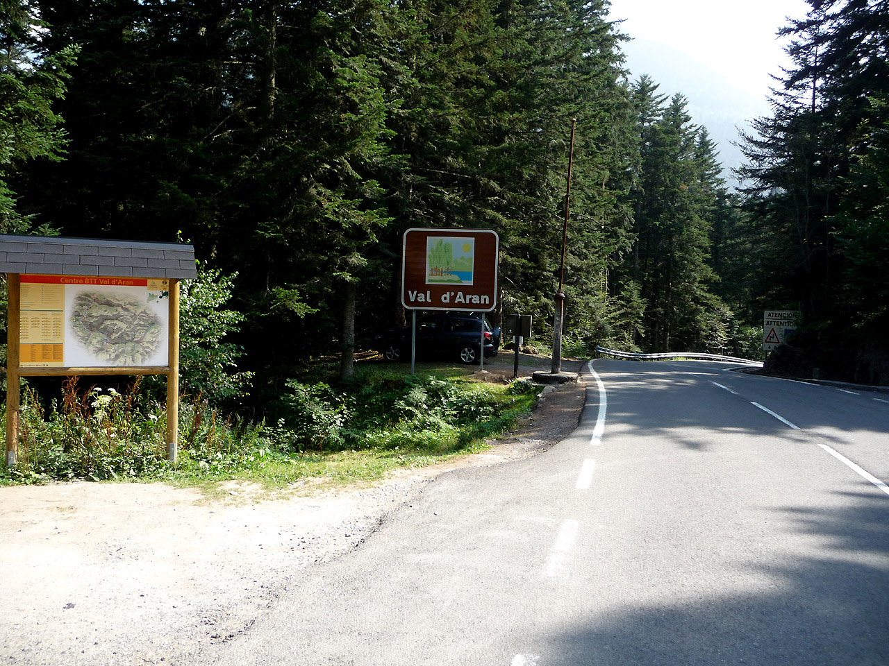 Der Blick geht Richtung Osten, der kleine Parkplatz liegt im Rücken des Betrachters. Links geht ein kleiner Wanderweg ab, von denen mehrere auf der Passhöhe zusammentreffen.