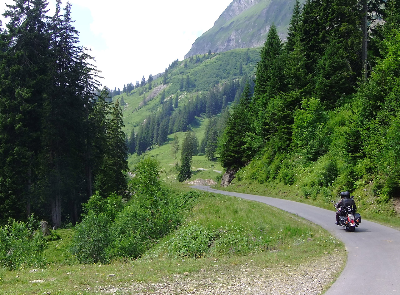 In Fahrtrichtung liegt die Passhöhe, allerdings noch mehrere Kilometer entfernt.