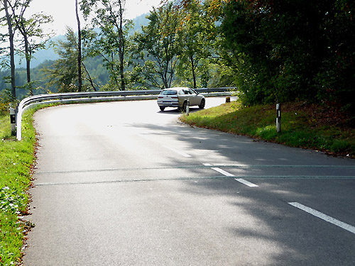 Col de la Givrine ist bei bestem Asphalt herrlich kurvig, wären da nicht die flachen Verkehrsberuhigungshubbel, die Raser von zu schnellem Fahren abhalten sollen.