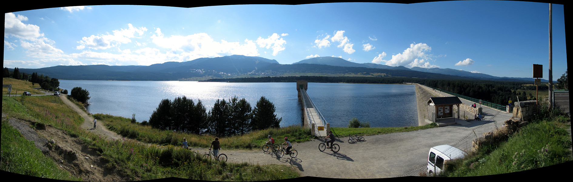 Von der Straße aus hat man gute Sicht auf Wasser und Staumauer.