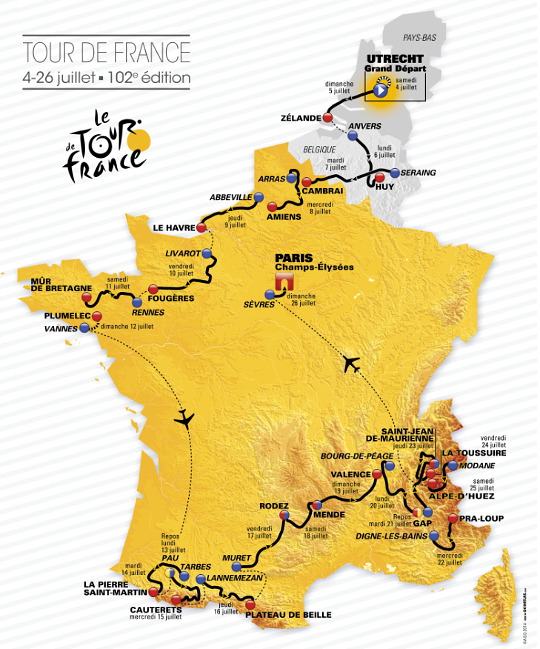 Frankreich. Gegen den Uhrzeigersinn, wie einige der anderen Touren dieses Jahr. Es wird in