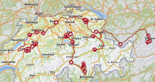 Gotthardpass dominiert wird. Während der 5. Etappe macht man einen Ausflug nach