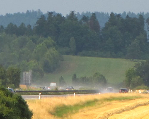 Auf dem Heimweg Richtung Köln, nachdem ich 3 Wochen in den Alpen unterwegs war, führ ich dem wolkenverhangenen Himmel über Deutschlands Autobahnen entgegen. Kurz vor einer Raststelle wurde es vor mir richtig düster. Daher machte ich an der Raststelle kurz Pause, dabei entstanden die folgenden Bilder.