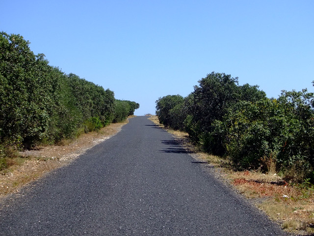 Kurz vor der höchsten Stelle wird diese Gerade befahren, die mit dem Bewuchs links und rechts irgendwie süß aussieht. Ist man hinten am Horizont angekommen, geht es nur noch bergab.