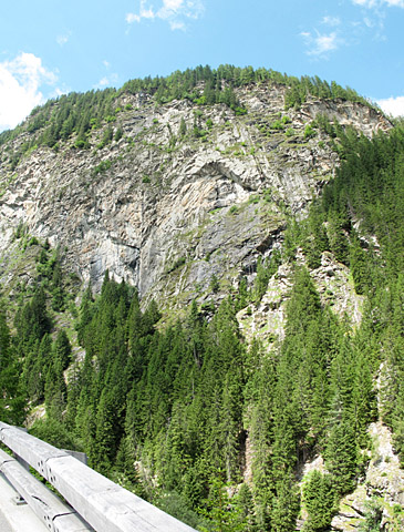 Mehr als hundert Meter ragt diese Steilwand in die Höhe, die von der Straße aus gut gesehen werden kann.