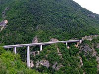 Mitten auf dem Weg wird noch eine imposante Brücke befahren, die einen Seitenarm der Schlucht überquert. Teilweise ist sie von der Auffahrt hoch zum Monte Zugna aus zu sehen. Wegen der guten Bedingungen ist fast überall zügiges Fahren möglich, wahrscheinlich wird auf dieser Nebenstraße auch weniger häufig kontrolliert als am Fugazze.