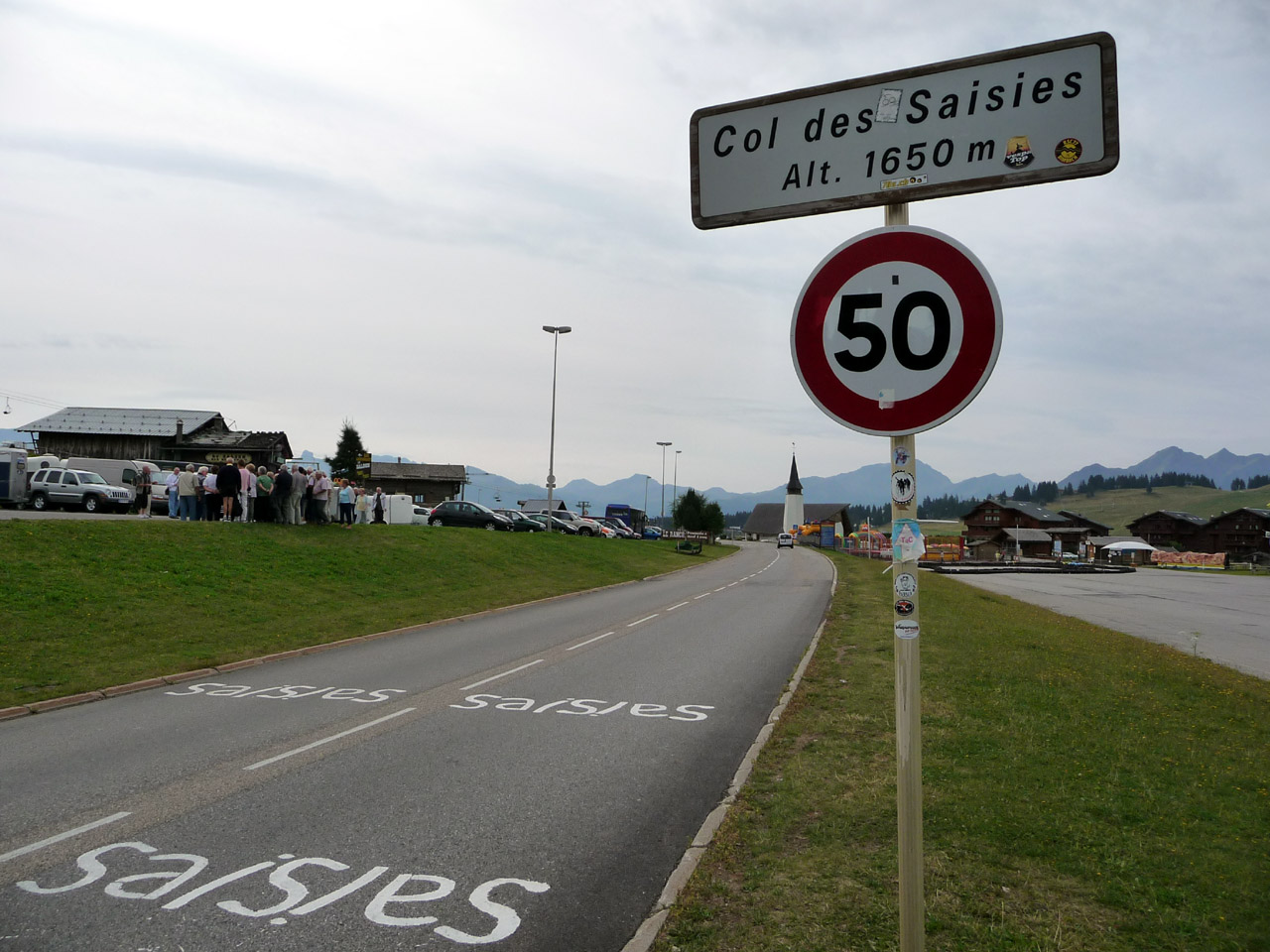 Das Passschild befindet sich auf der Nordseite der Passhöhe, oberhalb des Ortes