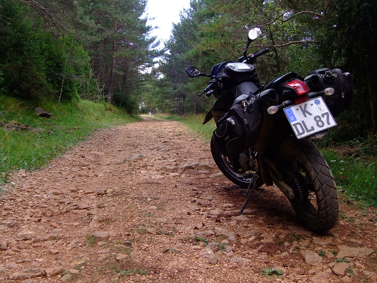 Manchmal wird es etwas ruppiger. Rund die Hälfte der Zeit geht es steil rauf oder steil runter, dann ist der Weg ausgewaschen und viele halb eingegrabene Steine drücken in den Reifen.
