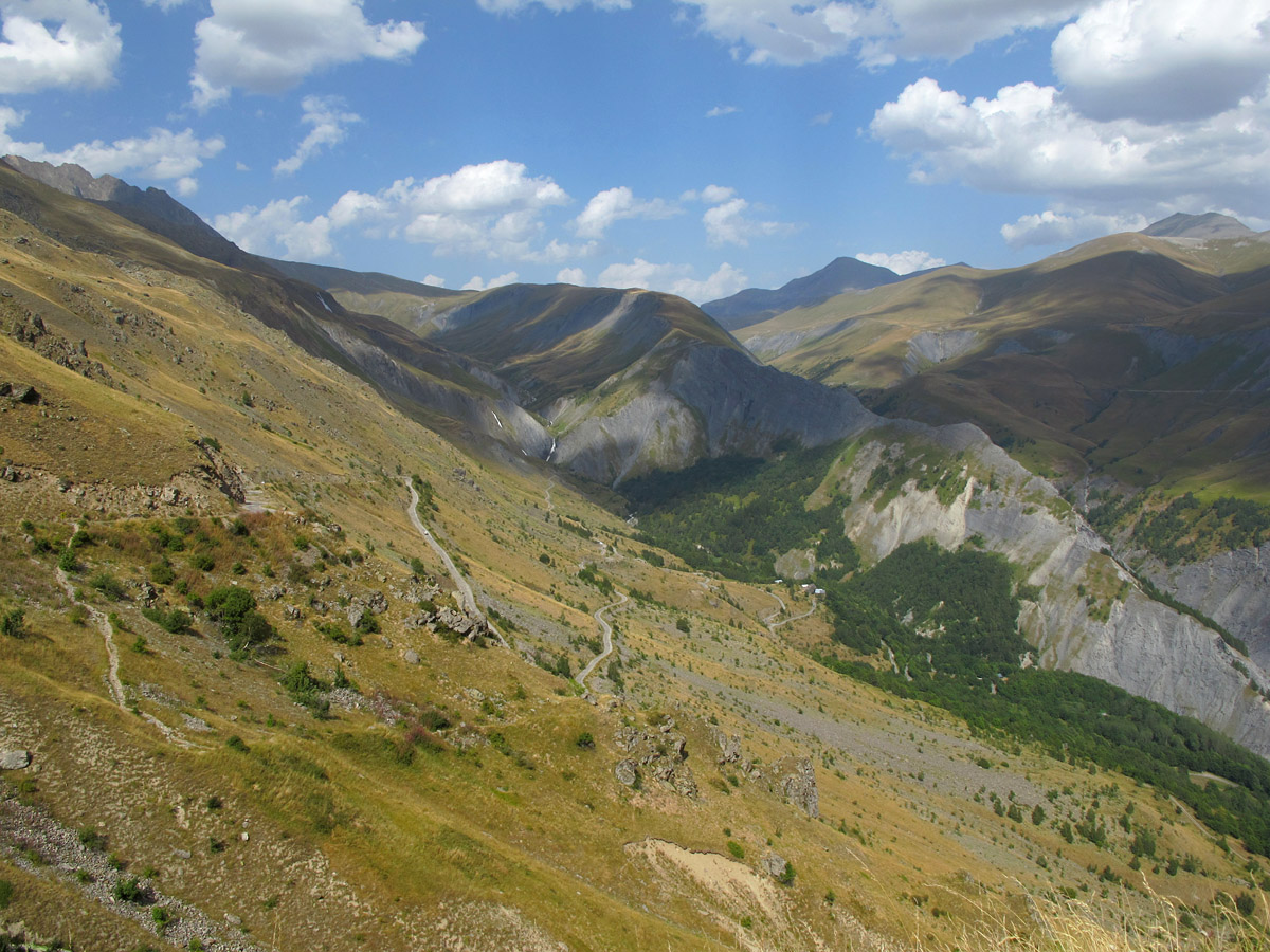 Ohne Randsicherung windet sich die schmale und hubbelige Piste hindurch.