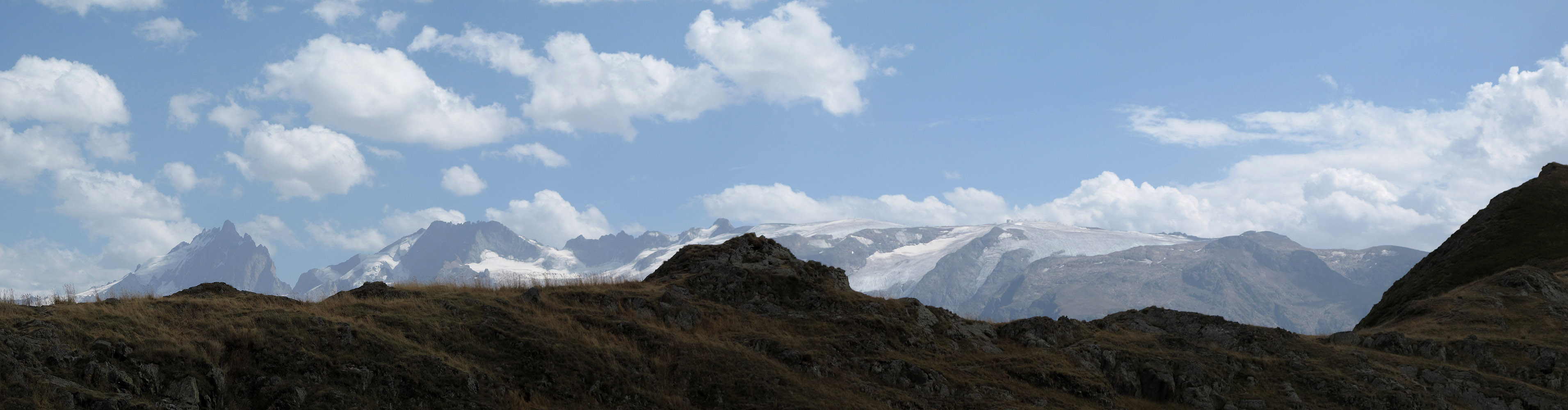Klettert man von der Passhöhe aus ein paar Meter nach oben, kommen Gletscher im Süden zum Vorschein. Noch besser sind sie vom Plateau d'Emparis(i) und der Westrampe des Lautaret(i) zu sehen.