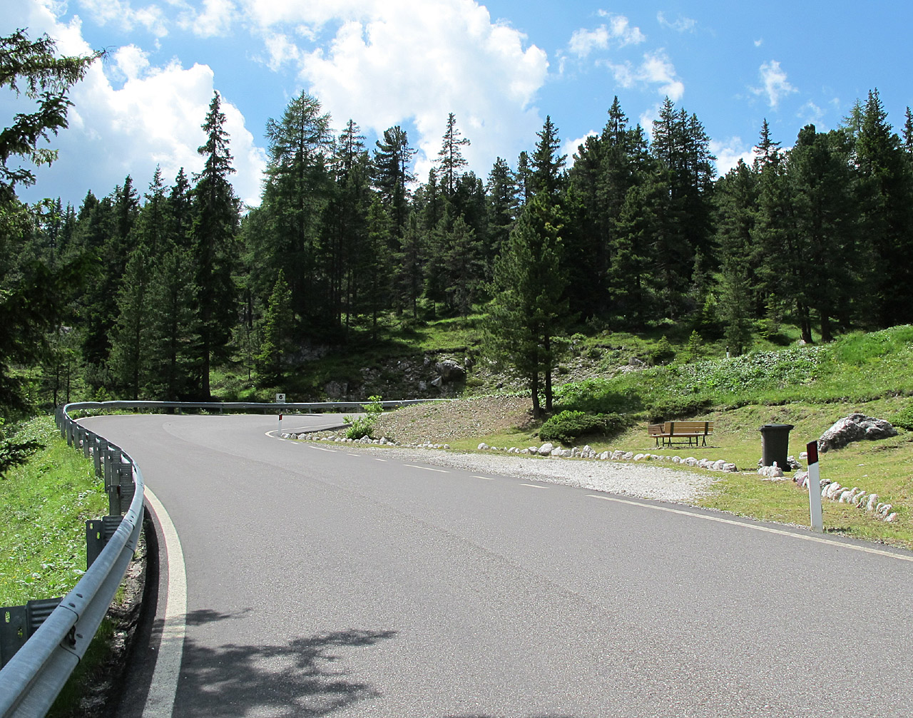 Hin und wieder sind in den Kurven der Südrampe kleine Raststellen zu finden.