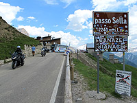 Die kleine Passhöhe ist schnell überquert, sofern sie nicht von Bussen und deren Touristenladungen total überfüllt ist. Die Busse kommen übrigens fast alle aus dem nördlich gelegenen Wolkenstein, daher ist es eher unwahrscheinlich, das allzuviele den Fahrspaß auf der Südrampe verderben.