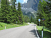 Auf der Hälfte der Rampe treffen dann die Rampen von Sellajoch und Grödnerjoch zusammen, kurz danach ist der schöne Teil der Abfahrt eigentlich schon vorbei. Der weitere Weg Richtung Talort Wolkenstein findet an einer Bergwand statt, die dicht bewachsen ist, und seltener den Blick in die Umgebung freigibt.