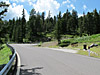 Die Südrampe des Sellajoch beginnt im stark bewaldeten unteren Drittel der Pordoi-Westrampe. Auch auf den ersten Kilometern der Sella-Rampe wachsen Bäume dicht an dicht, währen sich die Straße auf vielen Kurven nach oben schlängelt.