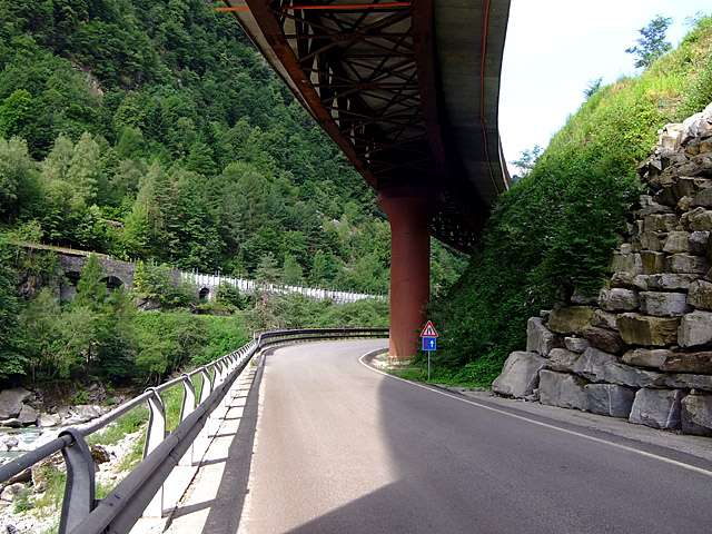 Wie in diesem Fall westlich des Ortes Varzo wird dabei die Hauptstraße häufig unterfahren.