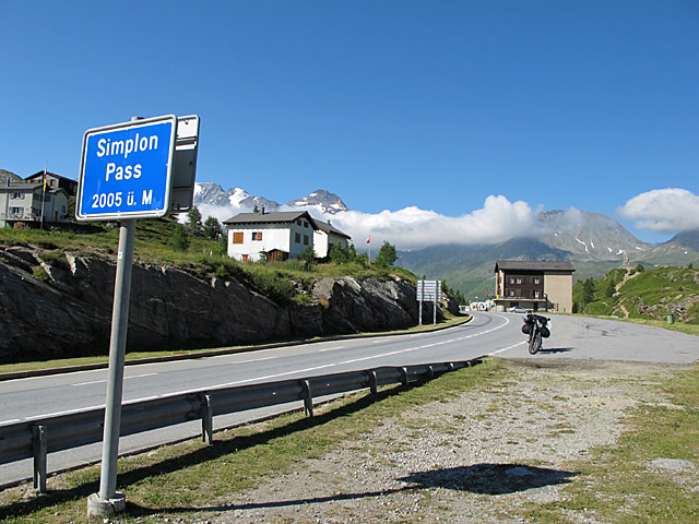 -Passhöhe sind mehrere Hotels zu finden, rechts das