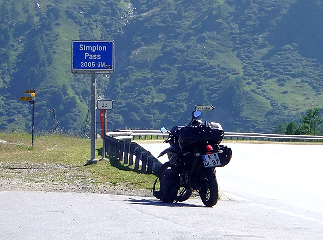 Blick auf das nördliche Passschild, das Hotel Simplonblick liegt im Rücken des Betrachters.
