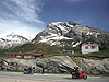Kurz hinter der Schlucht gewinnt die Straße die meisten Höhenmeter. Bereits vor dem Ort Simplon, der noch immer fast 10 Kilometer von der Passhöhe entfernt ist, wird die Steigung merklich geringer. Man befindet sich auf einer Art Hochplateau, die Straße führt mehr an weiten Wiesen und weniger an felsigen Steilhängen entlang. In der Landschaft sind einige Kasernen und verlassen wirkende Gebäude auszumachen, ansonsten ist nicht viel los. Ein paar hundert Meter vor der Passhöhe ist bereits zu erkennen, das sie nicht mehr weit entfernt ist.
