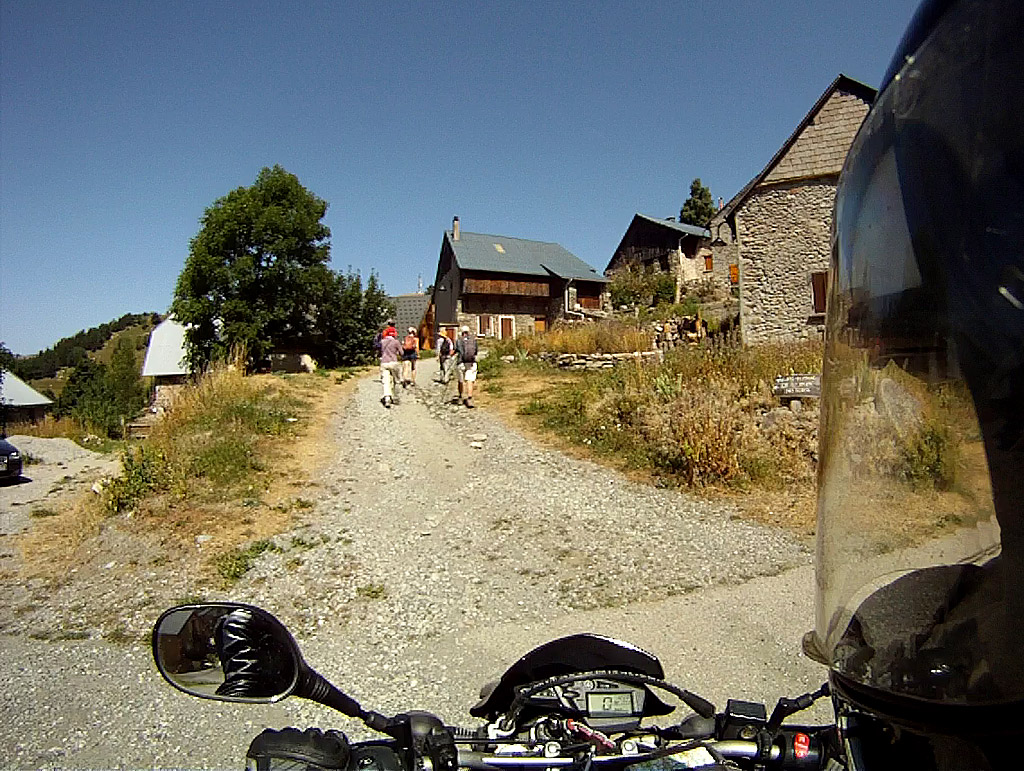 Mitten im Ort Villard-Reymond ist die Straße auf einmal zuende. Weiter führt nur ein sehr ruppiger Wanderpfad, von dem ich erst nicht wusste wohin er denn führen könnte. Glücklicherweise traf er nach wenigen Dutzend Metern auf asphaltierten Weg, der rechte Hand nicht weit von der Passhöhe entfernt war.
