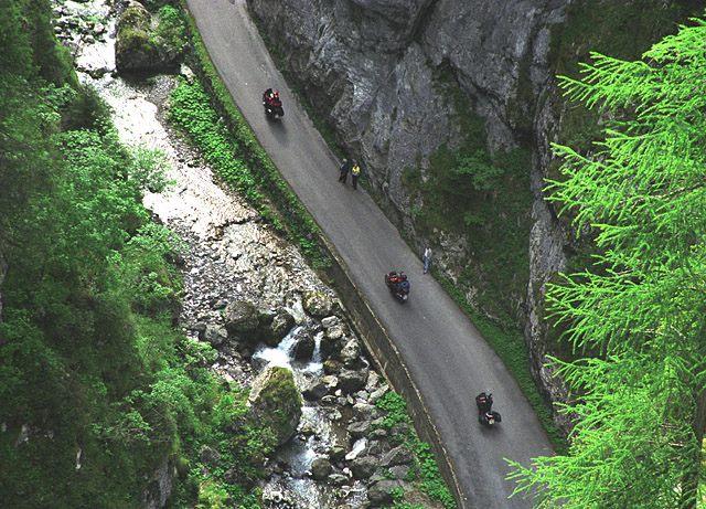 Blick in die Schlucht, aufgenommen mit einerm 120er Teleobjektiv von der zweiten (unteren) Brücke aus.