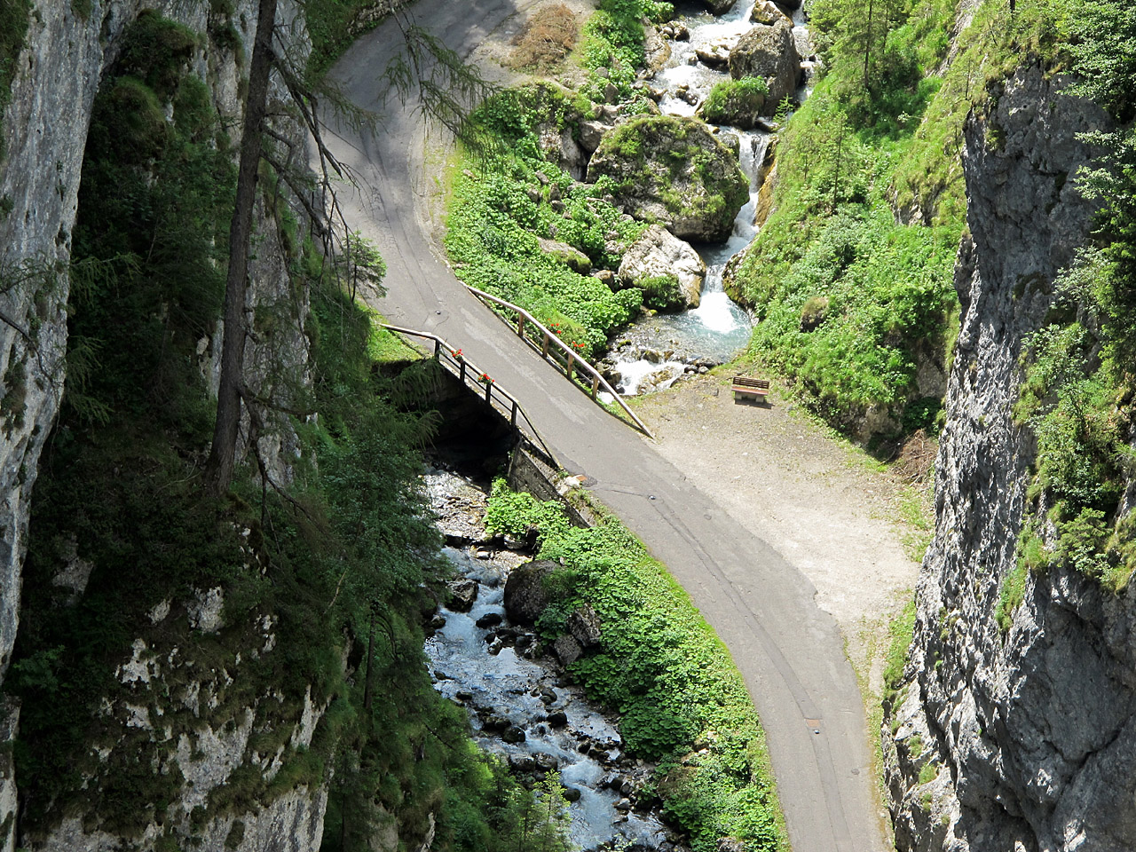 5-Fach Zoom-Aufnahme eines Bereiches der Schlucht, der von der zweiten (unteren) Brücke aus gesehen werden kann. Die kleine Brücke ist auch in dem großen Hochkant-Panoramabild zu finden.