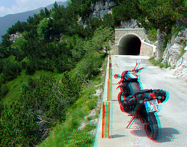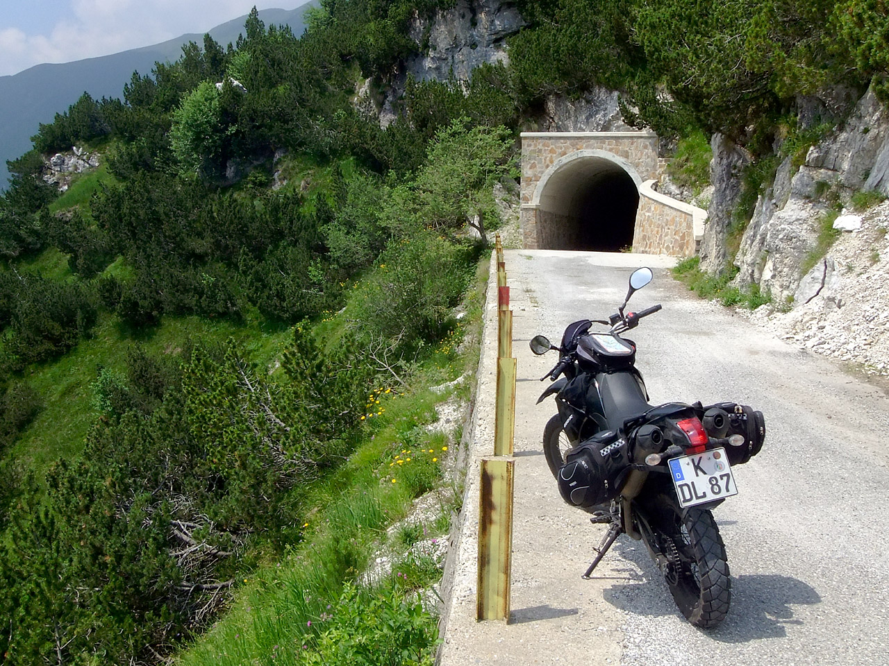 Aufgenommen am höchsten Punkt des Passo della Spina. Im Hintergrund ist der erste von mehreren kurzen Tunneln zu sehen, die auf dem Weg zum Passo del Maniva(i) liegen.