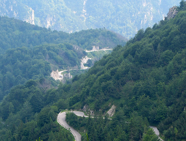 Im Vordergrund ist die asphaltierte Straße, im Hintergrund der geschotterte Bereich der Spina-Westrampe zu sehen. Ich bin mir nicht zu 100% sicher, glaube jedoch, das die Stelle des angesprochenen Rastplatzes sich genau in der Bildmitte befindet, Bänke und Tisch aber nicht zu sehen sind.