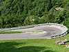 Gleich dahinter, im Panoramabild oben links zu sehen, beginnt ein geradliniger Abschnitt, indem die Straße ohne nennenswerte Kurven Richtung Norden führt. Kurz vor Erreichen des Talortes sind norch 4 Kehren in waldigem Gebiet zu absolvieren, dann ist das Ende der Passfahrt erreicht. Im Talort Splügen muss man etwas aufpassen, will man weiter zum San Bernardino fahren, aber nicht versehentlich auf der kostenpflichtigen schweizer Autobahn landen. Mehr dazu siehe Ein- und Ausfahrt.