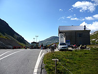 Hinter dem Ort sind es nur eine handvoll Kehren, dann hat man den Scheitelpunkt der Fahrt erreicht. Die Passhöhe präsentiert sich kurz und knapp mit einem Grenzübergang und Parkreihen. Für eine längere Pause ist sie weniger gut geeignet und für gewöhnlich nicht sehr voll, allerdings scheinen dort auch Touries mit Bussen hochgekarrt zu werden, nur um Mal ein paar Fotos zu machen.