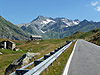 Der Weg hinunter in den Zielort Splügen ist schnell erklärt und ebenso schnell durchfahren. Fast direkt an der Passhöhe beginnt ein sehr kurven- und kehrenreicher Abschnitt, bei dem alle Richtungswechsel im offenen Gelände liegen. Ist grade wenig Verkehr unterwegs, was leider eher selten der Fall sein soll, ist dieser Abschnitt herrlich zu fahren. Während der Fahrt hat man zudem die Berge hinter Splügen die meiste Zeit im Blick. Dabei handelt es sich um einige schneebedeckte 3000er, der mit der im Wolkenschatten liegenden Spitze ist das Teurihorn.