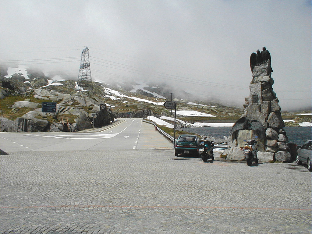 Die Passhöhe, mal einsam und verlassen. Aufgenommen 1999 bei kaltem und schlechten Wetter.