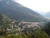 Die Ostrampe macht im Grunde da weiter, wo die Westrampe aufgehört hat. Gute und breite Straße, viel Natur, es kann schnell gefahren werden. Nach 8 von insgesamt 20 Kilometern wird der große Ort St. Martin Vésubie durchfahren, der zuvor von der Straße aus von oben wunderbar eingesehen werden kann. Gleich hinter zwei dicht aufeinanderfolgenden, kurzen Tunneln macht der Ort rechte Hand auf sich aufmerksam. Leider ohne Haltebucht in der Nähe, daher muss sich bei Bedarf eng an die Leitplanke gestellt werden. Zufälligerweis habe ich im Jahr 1999 und 2012 an fast derselben Stelle gestanden und ein Foto vom Talblick aufgenommen.