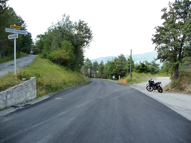 Der Blick geht nach Norden. Links geht eine Stichstraße hoch zur kleinen Ortschaft