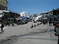 Auf der Passhöhe gibt’s alles, was das Herz begehrt: Restaurants, Hotels, Skiverleihe und auch Trödelbuden. Ganz abgesehen davon natürlich eine Menge Biker, die es sich da oben gut gehen lassen und die Aussicht genießen.