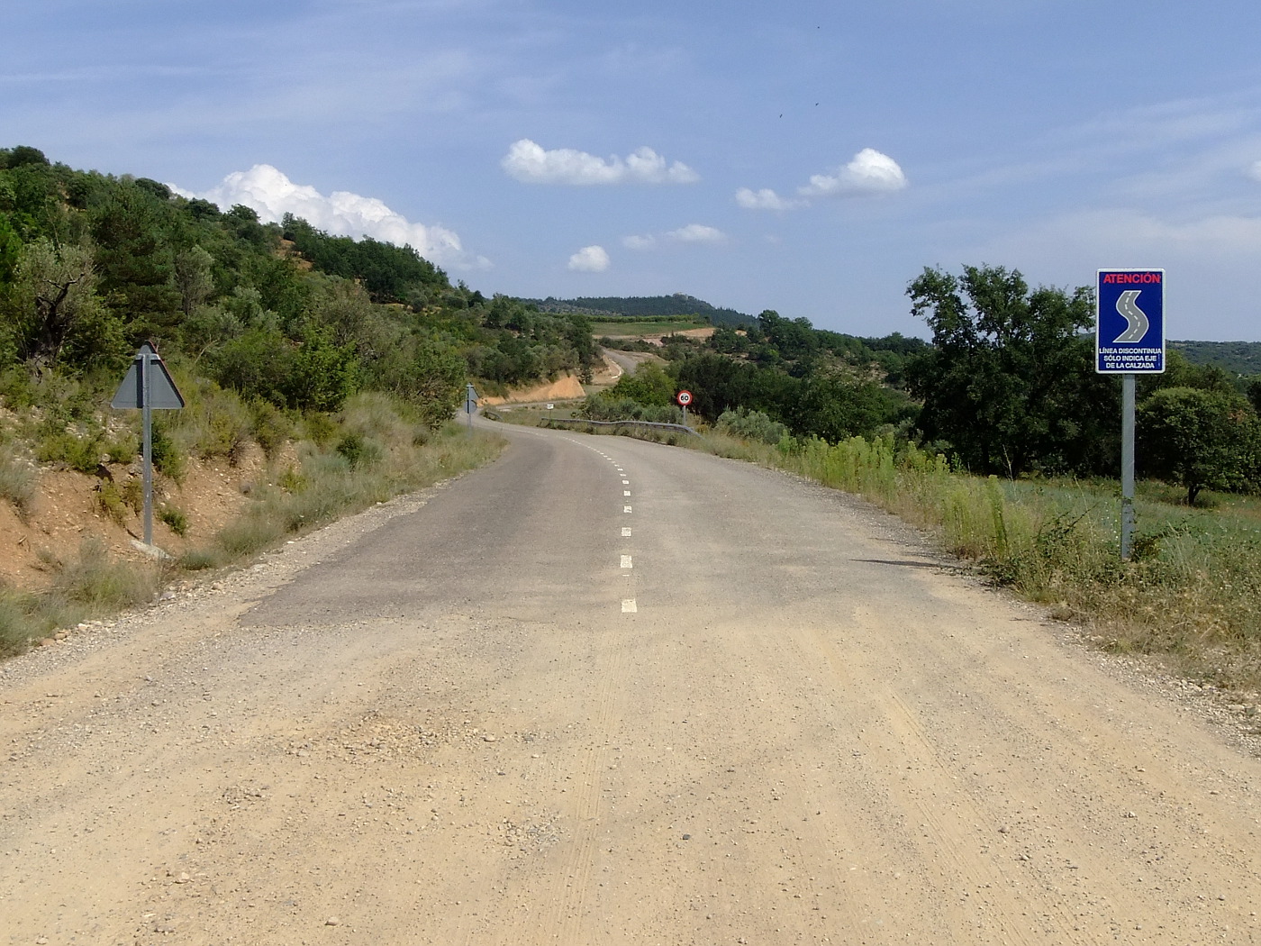 Urplötzlich wird aus der Schotterpiste eine breit ausgebaute, zweispurige und halbwegs gut asphaltierte Straße.