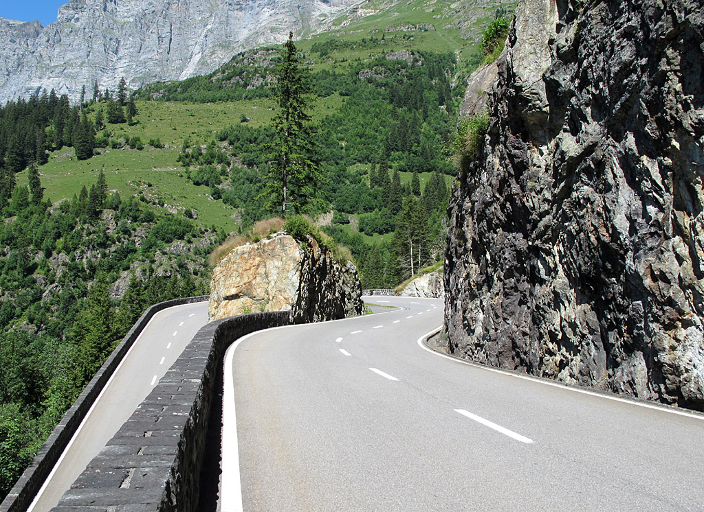 Eine der ersten engen Kehren, nachdem man (aus Westen kommend)